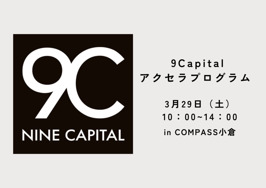 令和7年3月29日(土)COMPASS小倉にて、「9Capitalアクセラプログラム」のピッチ会を開催いたします! 9Capitalアクセラレーションプログラムは国内外有望起業家への育成プログラム提供を通じて北九州発グロ […]